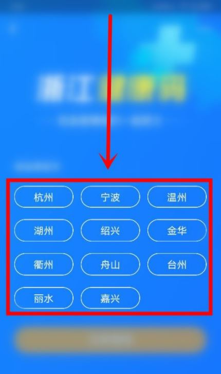 进入到浙江健康码这个页面中之后,在该页面中我们找到并选择好城市,点击选中。