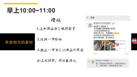 目的:这时候差不多要到午饭的时间了,有些人已经在思考中午吃什么了,闲下来看看朋友圈,所以这个时候要抓住他们的眼球和味蕾。