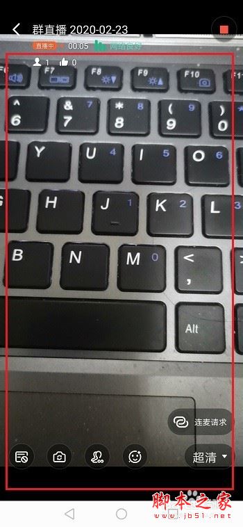 第四步点击群直播,进去直播界面,点击上方的超清,可以切换为标清,如下图所示: