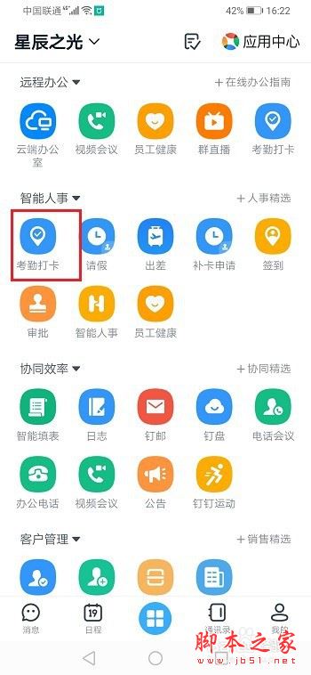 第一步手机上打开钉钉,进去工作台之后,点击考勤打卡