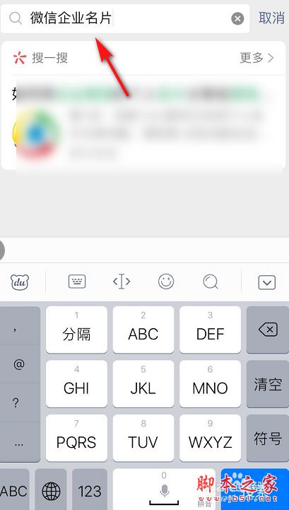 1、首先,点击打开手机微信,点击搜索栏,搜索企业微信名片