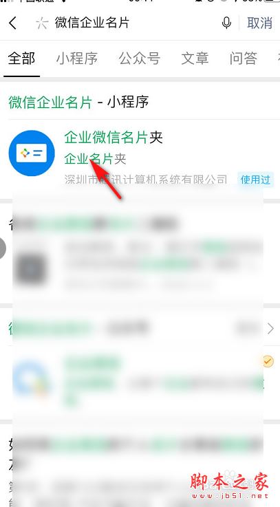 2、点击企业微信名片,进入小程序
