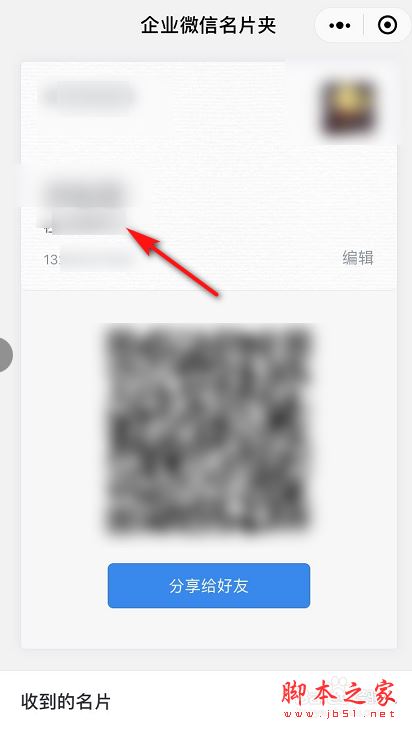 4、编辑完成后,即可得到名片信息二维码,将二维码分享给朋友/客户即可