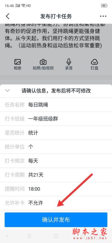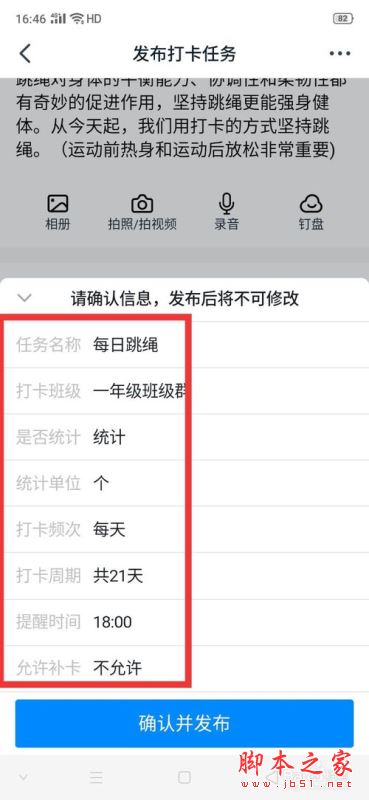 核对完信息后,点击【确认并发布】即可,打卡任务就发布完成了。