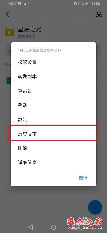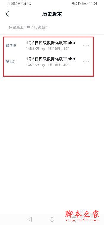 第四步点击三点图标之后,选择历史版本,如下图所示: