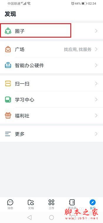 第一步手机上打开钉钉,进去发现页,点击圈子,如下图所示: