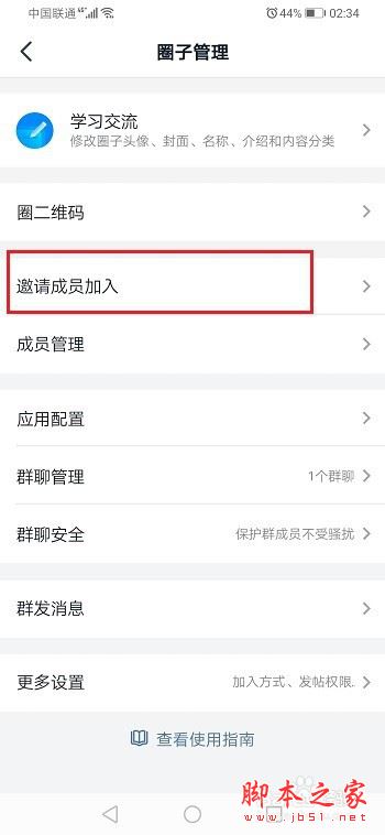 第三步在圈子管理界面,点击邀请成员加入,如下图所示: