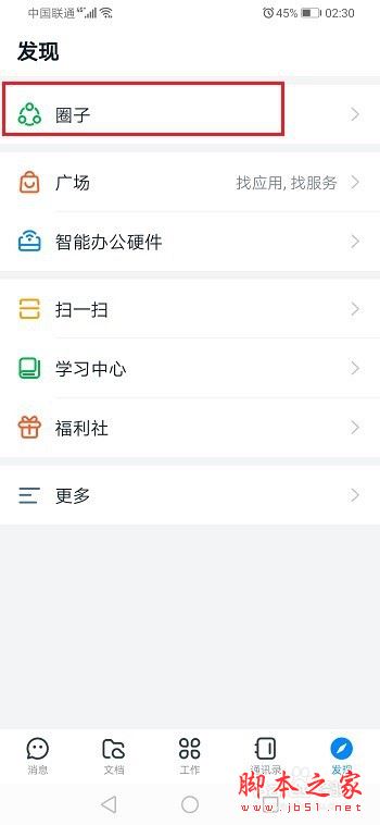 第一步手机上打开钉钉,进去发现页,点击圈子,如下图所示: