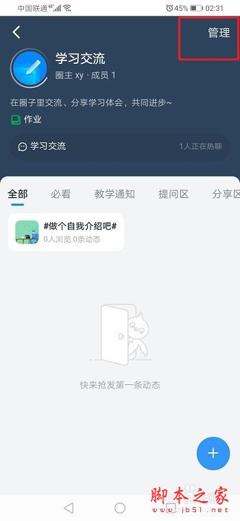 第二步进去圈子之后,点击管理,如下图所示:
