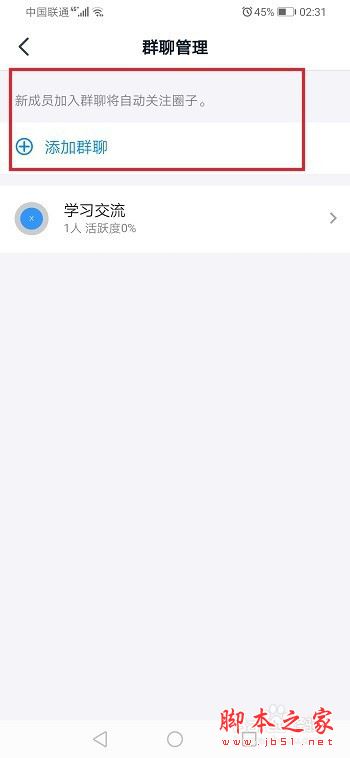 第五步点击之后,可以关联现有的群聊,也可以关联新建的群,关联之后,群成员将会自动关注圈子,如下图所示: