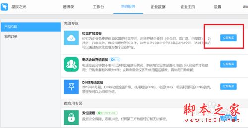 第三步进去之后,选择钉盘扩容套餐,点击立即购买,如下图所示: