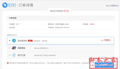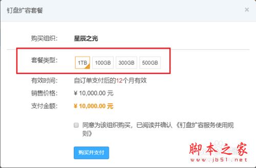 第四步进去之后,选择钉盘扩容的容量,选择购买并支付,如下图所示:
