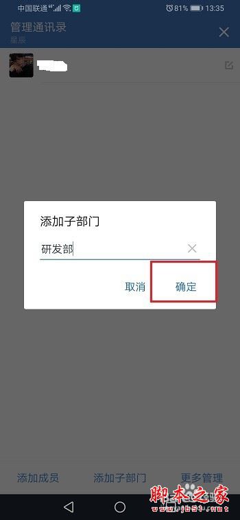 第四步输入添加的子部门名称,点击确定,如下图所示:
