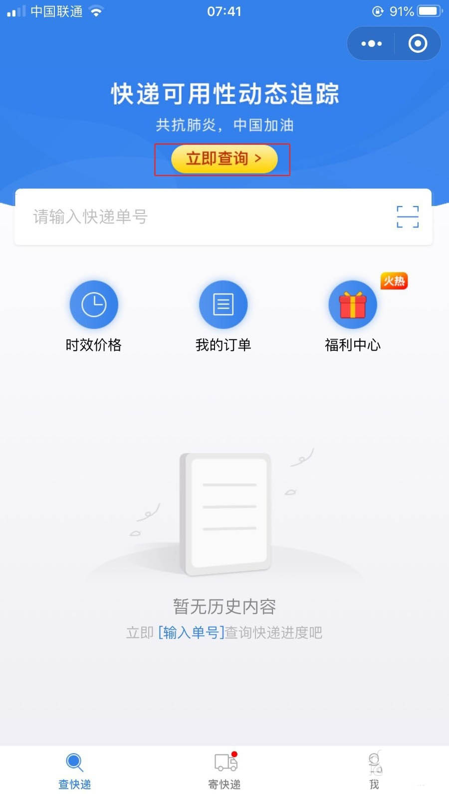 3、在查快递快递可用性动态追踪处点击立即查询。