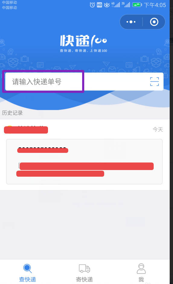 2、打开进入快递100微信小程序。