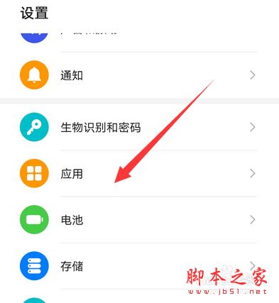 打开手机设置,点击应用。