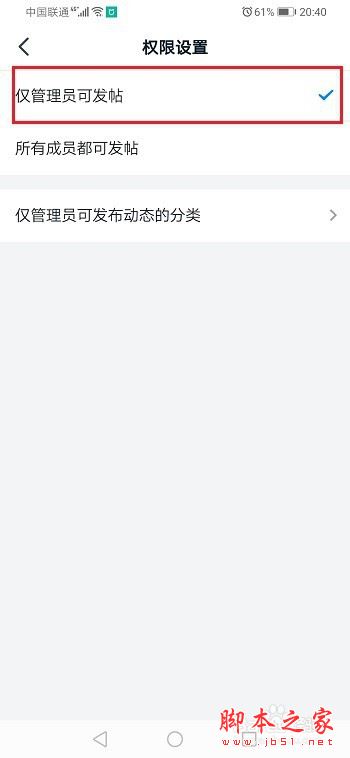 第五步我们可以设置仅管理员可以发帖,根据需要设置,如下图所示: