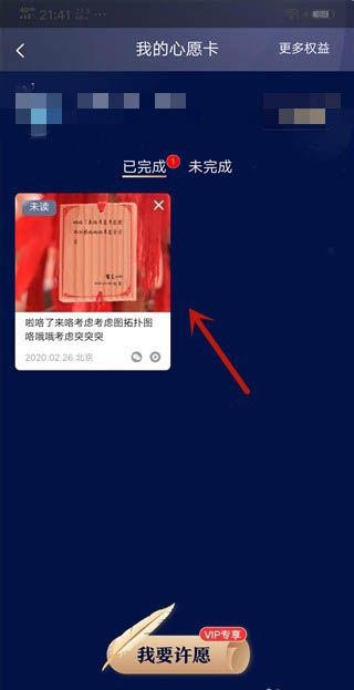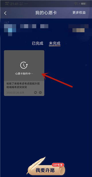 3、然后进入到我的心愿卡,点击【我要许愿】。