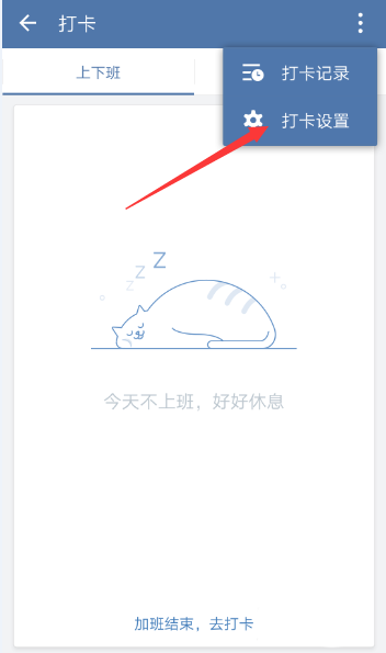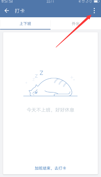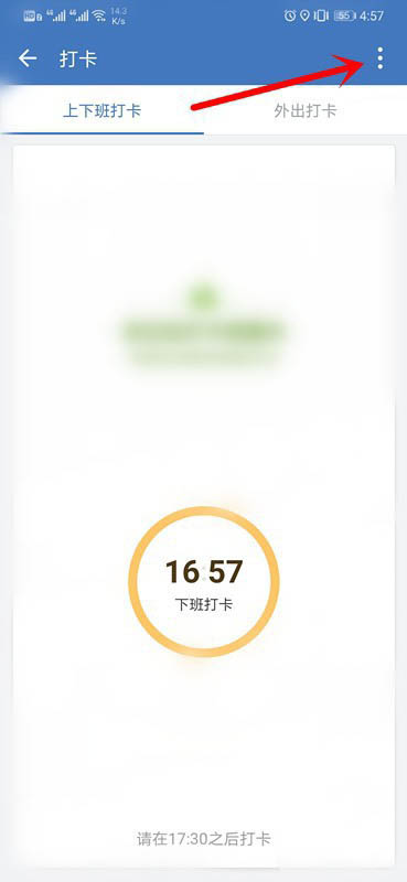 3、进入打卡,继续点击右上角【竖三点】。