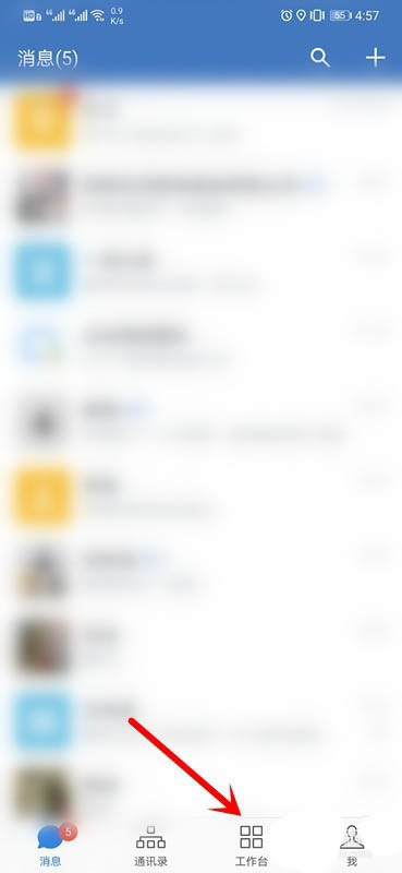 1、进入企业微信,在主页面点击【工作台】。