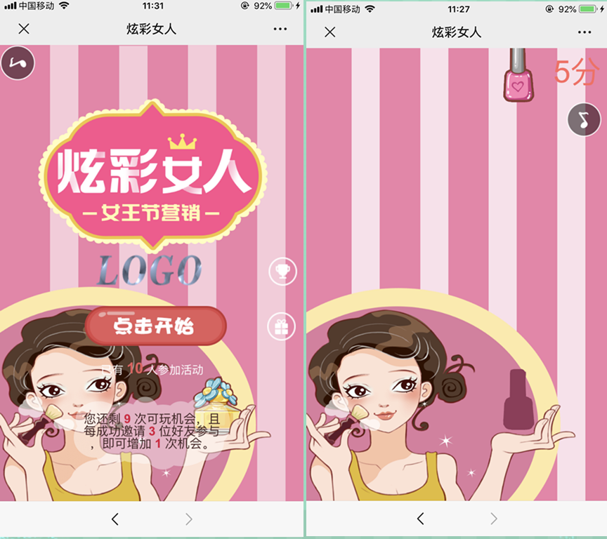 通过以上几个例子,整个妇女节微信活动方案就已经被扒开了,后只要保存好游戏活动方案,并到活动中心里将妇女节微信活动发布和分享出去,妇女节活动就可以顺利开展了。