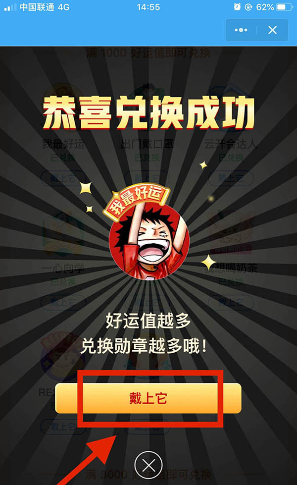 4、既然是兑换的,那就要有分值来兑换,点击【集好运兑专属勋章】。
