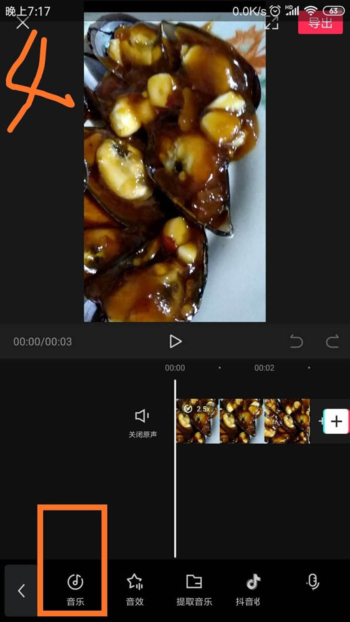 4、在编辑中点击音乐。