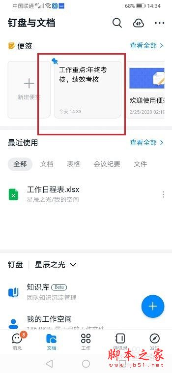 第二步进去钉钉文档页之后,点击要删除的便签,如下图所示: