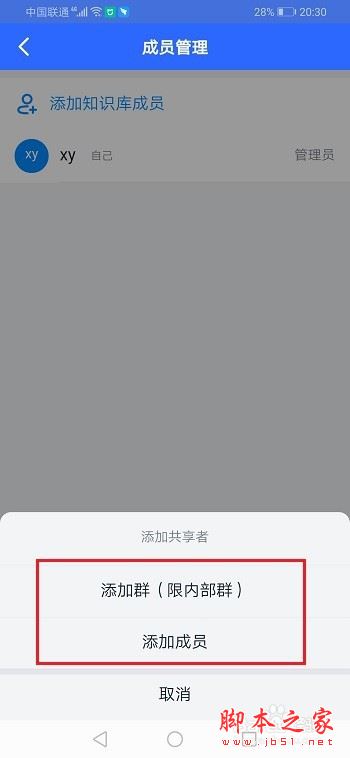 第四步进去成员管理界面之后,点击添加知识库成员,如下图所示: