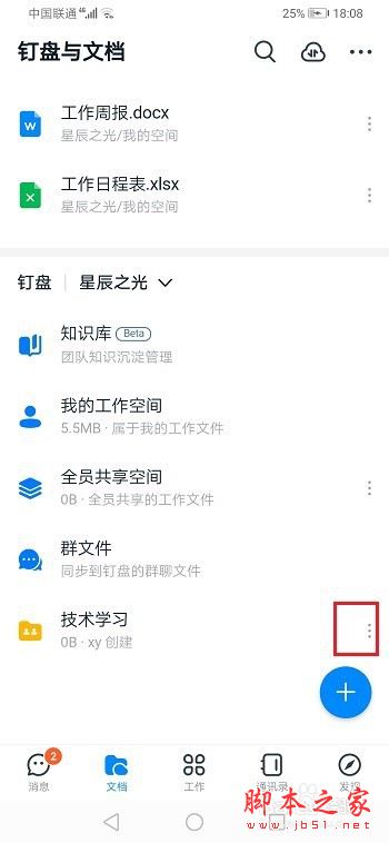 第二步进去钉钉文档页之后,选择要删除的共享空间,点击三点图标,如下图所示: