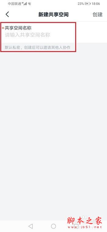 第三步进去之后,输入共享空间的名称,如下图所示: