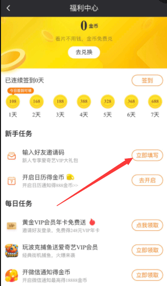 ②进入福利中心后,你可以看到【新手任务】里有个【输入好友邀请码】,点击【立即填写】即可。
