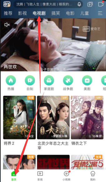 ①点击爱奇艺极速版下方的【首页】在上方找到【电视剧】,随便点一个自己喜欢的电视剧观看。