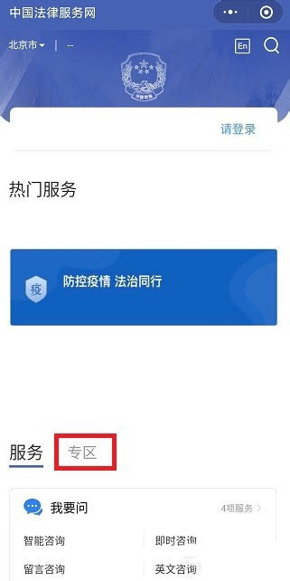 2、然后点击输入中国法律服务网,搜索这个小程序。