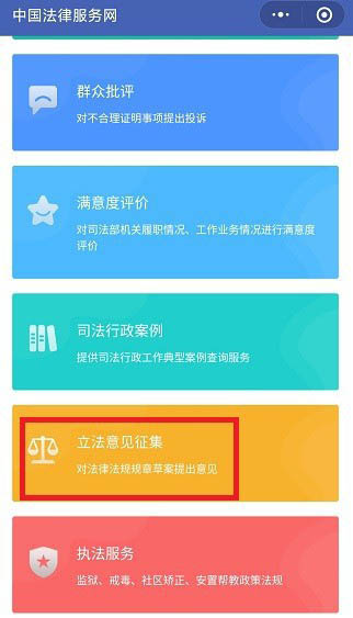 4、以后可以看到有立法意见征集,我们点击立法意见征集。