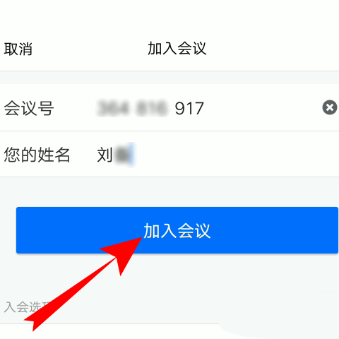 4、页面跳转,填写对应的会议号。