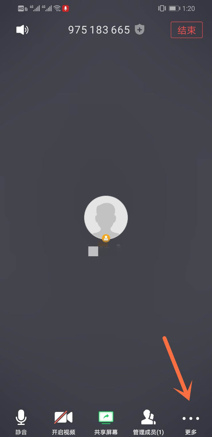 2、进去之后,会议只有你一个人,属于会议创建人。我们点击右下角的“更多”这里。