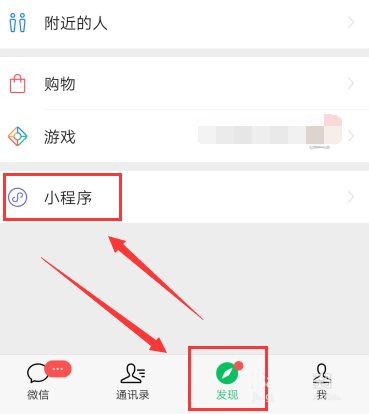 2、微信主界面,点击下方菜单“发现”—“小程序”。