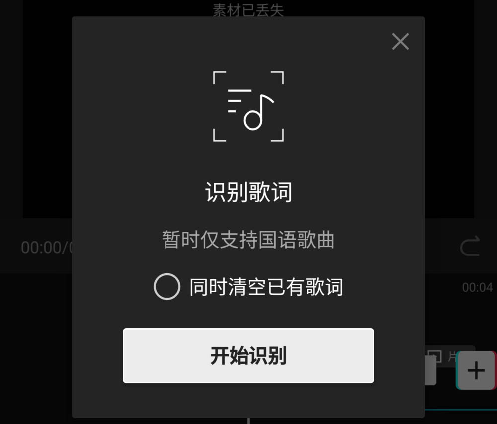4、在弹出的对话框里面点击【开始识别】,不需要的歌词可以勾选【清空已有歌词】。