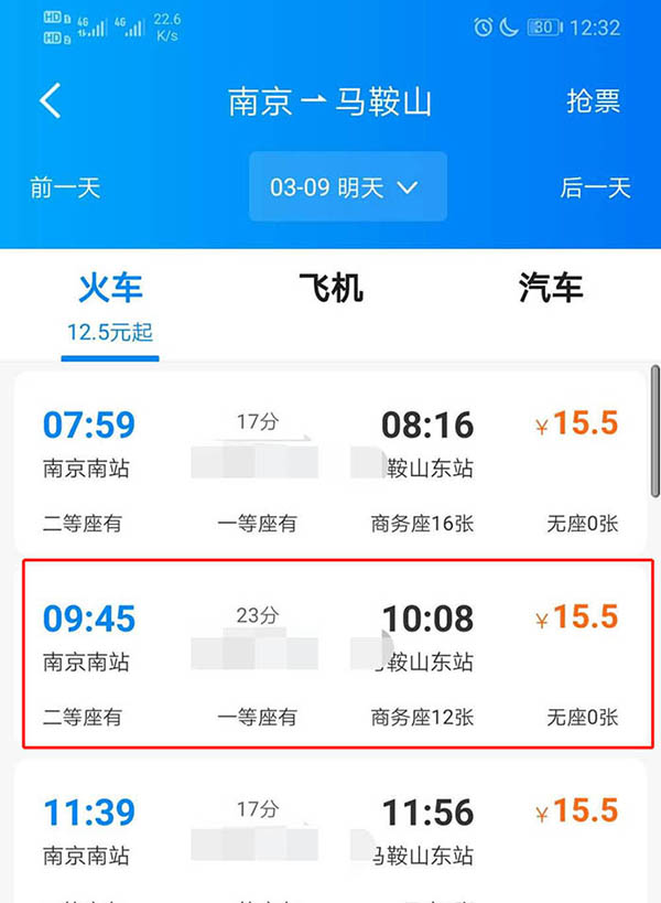 4、之后选择车次,如图所示。