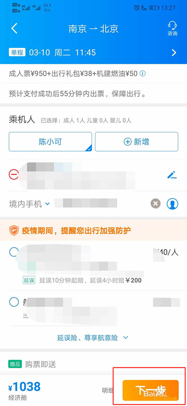 6、之后添加乘客和手机号,如图所示。