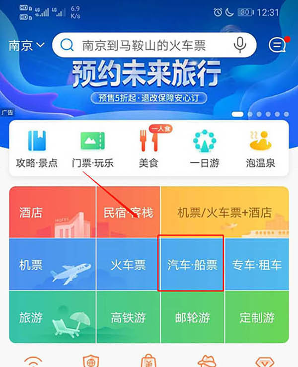 2、然后点击汽车票,如图所示。