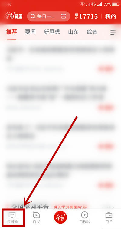 2、点击右下角按钮【强国通】。