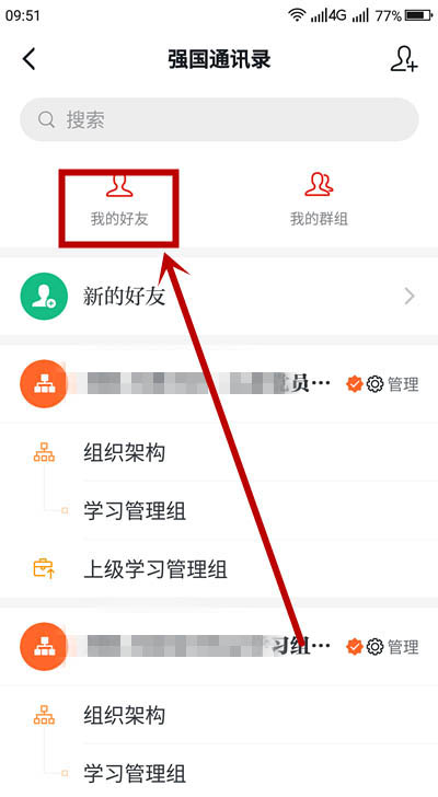 4、在【强国通讯录】页面,找到【我的好友】单击