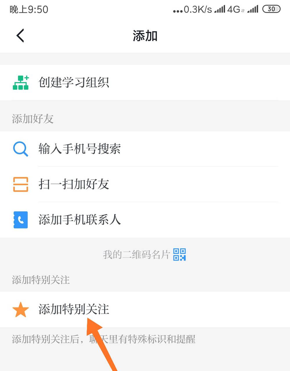 二、添加好友特别关注
