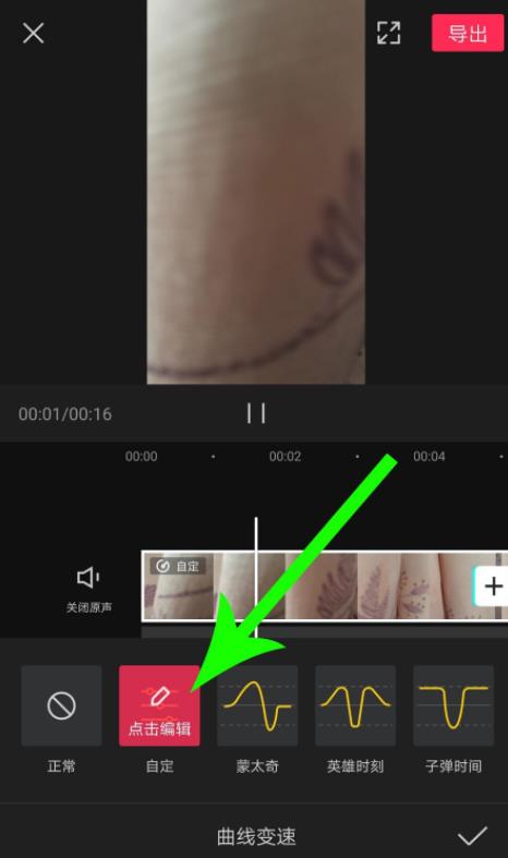 1、打开曲线变速界面点击“自定”,然后点击“编辑”。