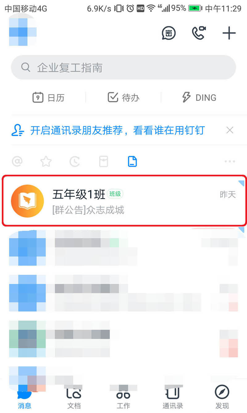 1、打开钉钉,进入需要发布群公告的钉钉群,这里以班级群为例,如下图: