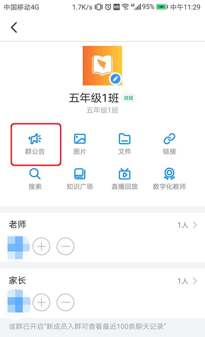 2、再点击“群公告”,如下图所示。