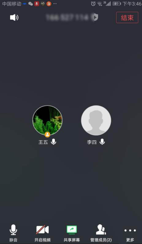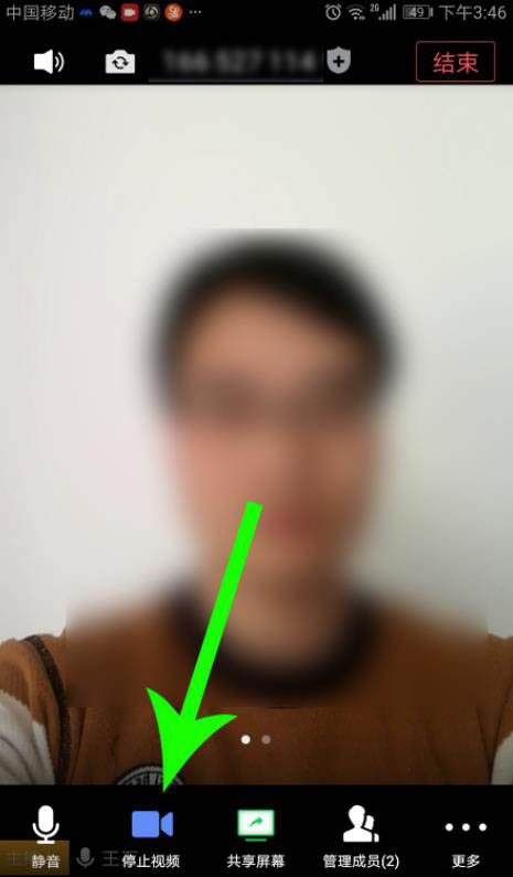 2、打开底部选项后点击“停止视频”即可关闭摄像头。