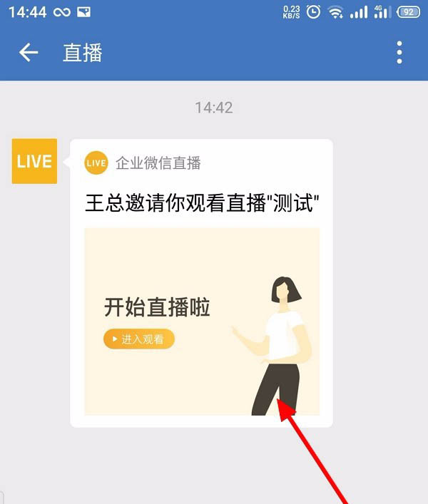 1、打开企业微信,点击 消息>直播邀请>进入观看;